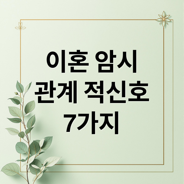 결혼은 아름다운 여정이어야 하지만, 현실적 어려움이 쌓여 이혼을 고민하게 되는 부부도 많습니다. 관계가 악화되는 초반에는 눈에 잘 띄지 않지만, 어느 순간 명확한 ‘적신호’로 나타나기도 해요. 이 글에서는 많은 상담 전문가들이 공통적으로 말하는 이혼을 암시하는 7가지 신호를 정리합니다.